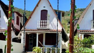 Die Unterkunft Casa estilo chale dúplex com 3 quartos, churrasqueira, balanço, chuveirão e a uma quadra da praia besticht durch Gartenblick ist gelegen in Mangaratiba, 400 m von Strand Praia do Saco entfernt.
