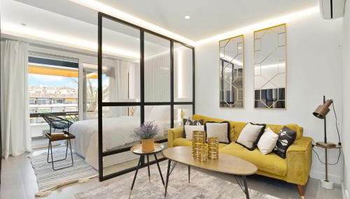 Die Unterkunft Golden Mile Lux Sea View Suite with Balcony, die über einen saisonalen Außenpool, einen Garten und eine Terrasse verfügt, bietet Übernachtungsmöglichkeiten in Marbella mit kostenlosem WLAN und Meerblick.