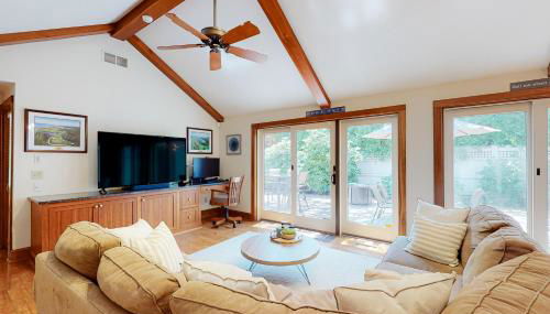 Die Unterkunft Mews Village Villa, die in Mashpee gelegen ist, 2,5 km von Strand South Cape Beach und 25 km von Sandwich Glass Museum entfernt, besticht durch ein Restaurant und eine Klimaanlage. Dieses Ferienhaus verfügt außerdem über einen eigenen Pool.