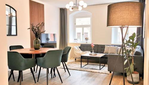 Die Unterkunft Fynbos Apartments Deluxe, Balkon, historisch, Parkplatz, die über einen Garten verfügt, bietet Übernachtungsmöglichkeiten in Meißen mit kostenlosem WLAN und Gartenblick.