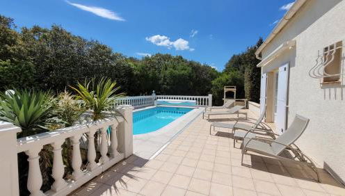 Die Unterkunft La Cèzenole - Villa climatisée 5 étoiles - Piscine Chauffée - Label Famille - Gorges de la Cèze, die über einen saisonalen Außenpool, einen Garten und eine Terrasse verfügt, bietet Übernachtungsmöglichkeiten in Méjannes-le-Clap mit kostenlosem WLAN und Poolblick.