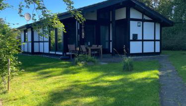 Dieses Ferienhaus mit einer Terrasse und Gartenblick bietet 2 Schlafzimmer, ein Wohnzimmer, einen Flachbild-TV, eine gut ausgestattete Küchenzeile mit einem Kühlschrank und einem Geschirrspüler sowie 1 Badezimmer mit einer Dusche. In diesem Ferienhaus werden Handtücher und Bettwäsche angeboten.