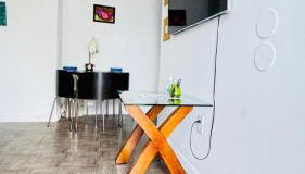 Diese Ferienwohnung mit Klimaanlage ist ausgestattet mit 1 Schlafzimmer, Flachbild-TV, einem Essbereich, einer Küche mit einem Kühlschrank und einem Wohnzimmer. In dieser Ferienwohnung werden Handtücher und Bettwäsche zur Verfügung gestellt.