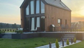 Die Unterkunft Golden House - Mazury, die über einen Garten und eine Terrasse verfügt, bietet Übernachtungsmöglichkeiten in Liwa mit kostenlosem WLAN und Flussblick.