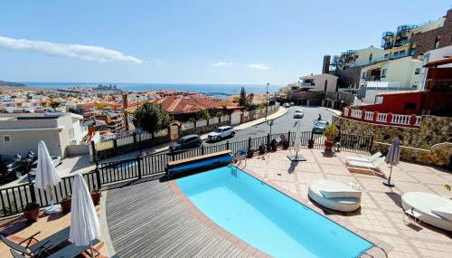 Die Unterkunft Villa Magnificent 5-star with sea view, jacuzzi and pool mit Stadtblick in Arguineguín bietet Übernachtungsmöglichkeiten mit kostenlosen Fahrrädern, einem Außenpool, einem Fitnesscenter, einem Garten und einer Gemeinschaftslounge.