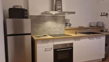 Diese Ferienwohnung besteht aus 1 Schlafzimmer, einem Wohnzimmer, einer voll ausgestatteten Küche mit einem Kühlschrank und einer Kaffeemaschine sowie 1 Badezimmer mit einer Dusche und einem Haartrockner. In dieser Ferienwohnung werden Handtücher und Bettwäsche angeboten.