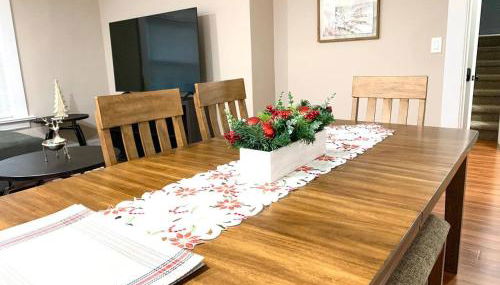 Die Unterkunft Newly Renovated 2 BR downtown Apt, family getaway. Ist versehen mit 2 Schlafzimmern, einer Küche mit einem Kühlschrank und einem Geschirrspüler, einer Waschmaschine und 1 Badezimmer mit kostenlosen Pflegeprodukten und einem Haartrockner. Es gibt einen TV.