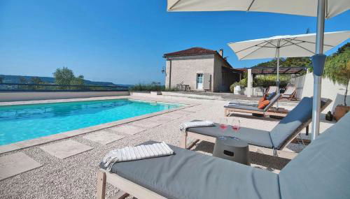 Die Unterkunft Domaine Lapèze, Gite Le Cabernet., die über einen saisonalen Außenpool, einen Garten und eine Terrasse verfügt, bietet Übernachtungsmöglichkeiten in Montcuq mit kostenlosem WLAN und Stadtblick.