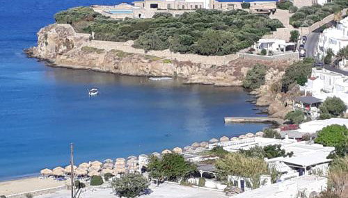 Die Unterkunft Mykonos Beachfront House with Sunset & Delos View besticht durch Stadtblick und Übernachtungsmöglichkeiten mit einer Terrasse und einer Veranda / Patio, ungefähr 300 m von Strand Agios Stefanos entfernt.
