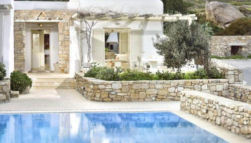 Die Unterkunft Villa Mon Rêve with Private Jacuzzi "5-minute walk - Ornos beach", die über einen saisonalen Außenpool, einen Garten und eine Terrasse verfügt, bietet Übernachtungsmöglichkeiten in Mykonos Stadt mit kostenlosem WLAN und Gartenblick.
