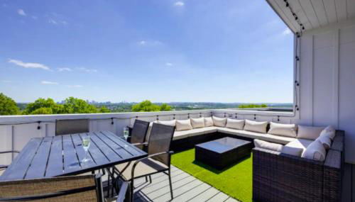 Die Unterkunft Luxury four-story Home with Rooftop views, 10min to Downtown! Sleeps 12! verfügt über Stadtblick und Übernachtungsmöglichkeiten mit einer Bar und einem Balkon, ungefähr 6,8 km von Parthenon entfernt.