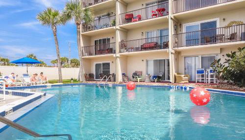 Die Unterkunft Mariners Cove 109 ~ Across the street from the Beach ~ MC109, die in New Smyrna Beach gelegen ist, 300 m von Strand am 27th Avenue Park und 33 km von Leuchtturm-Museum Ponce de Leon Inlet entfernt, besticht durch kostenloses WLAN und eine Klimaanlage.