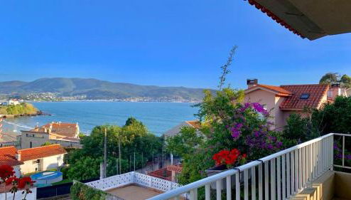 Dieses Ferienhaus mit einer Terrasse und Meerblick bietet 4 Schlafzimmer, ein Wohnzimmer, einen Flachbild-TV, eine gut ausgestattete Küche mit einem Kühlschrank und einem Geschirrspüler sowie 2 Badezimmer mit einem Bidet. In diesem Ferienhaus werden Handtücher und Bettwäsche angeboten.
