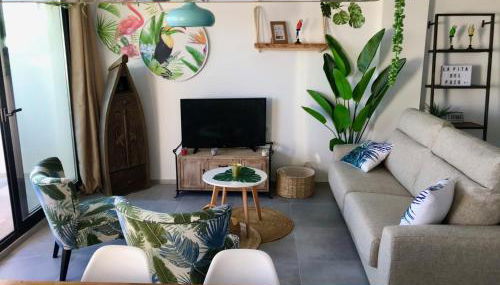 Diese Ferienwohnung mit Klimaanlage besteht aus 2 Schlafzimmern, einem Wohnzimmer, einer voll ausgestatteten Küche mit einem Kühlschrank und einer Kaffeemaschine sowie 2 Badezimmern mit einer Dusche. In dieser Ferienwohnung werden Handtücher und Bettwäsche zur Verfügung gestellt.