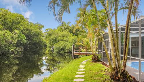 Die Unterkunft Bring Snacks and Relax! Waterfront, Heated pool, Cribs, Pets, Rods, BBQ, die über einen Außenpool, einen Garten und eine Terrasse verfügt, bietet Übernachtungsmöglichkeiten in North Fort Myers mit kostenlosem WLAN und Poolblick. Diese Unterkunft bietet Zugang zu einem Billardtisch, Tischtennis und einem kostenlosen Privatparkplatz.