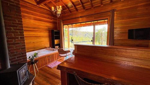 Die Unterkunft Chalé dos Coqueiros em Nova Petrópolis bietet einen Whirlpool.