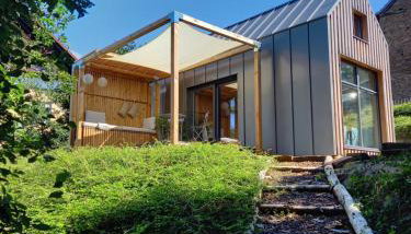 Die Unterkunft tiny house Pfalz Wellness und Wanderurlaub, die über kostenlose Fahrräder, einen Garten und eine Terrasse verfügt, bietet Übernachtungsmöglichkeiten in Oberweiler-Tiefenbach mit kostenlosem WLAN und Bergblick.