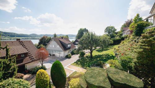 Die Unterkunft Ferienwohnung Menzer am See, die über eine Terrasse verfügt, bietet Übernachtungsmöglichkeiten in Öhningen mit kostenlosem WLAN und Gartenblick.