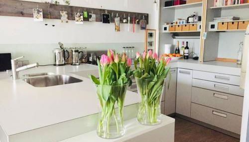 Die Unterkunft Wohnen auf Zeit, Boardinghouse, zentral gelegen bietet ihren Gästen eine Terrasse, Gartenblick, einen Sitzbereich, einen Satelliten Flachbild-TV, eine voll ausgestattete Küche mit einem Kühlschrank und einem Geschirrspüler sowie ein eigenes Badezimmer mit einer Dusche und kostenlosen Pflegeprodukten. Es gibt einen Ofen, eine Mikrowelle und eine Herdplatte sowie eine Kaffeemaschine und einen Wasserkocher.