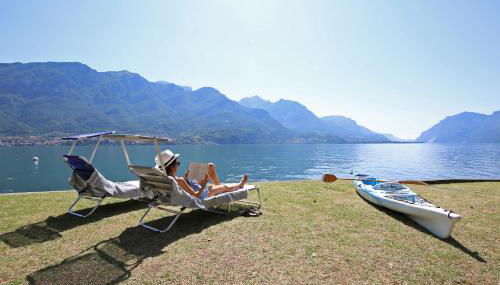 Die Unterkunft Apartment A lago private beach and parking, die über einen Garten, einen eigenen Strandbereich und eine Terrasse verfügt, bietet Übernachtungsmöglichkeiten in Oliveto Lario mit kostenlosem WLAN und Bergblick.