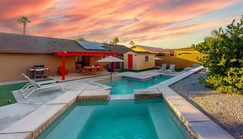 Die Unterkunft Snowbird-friendly home with private pool, spa, grill, enclosed backyard, WD, AC verfügt über klimatisierte Übernachtungsmöglichkeiten mit einem eigenen Pool, Bergblick sowie einer Terrasse und ist in Palm Springs gelegen. Sie ist 1,9 km von Golfclub Escena entfernt gelegen und bietet einen Geldautomaten.