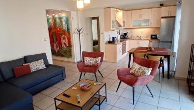 Diese Ferienwohnung mit Klimaanlage besteht aus 2 Schlafzimmern, einem Wohnzimmer, einer voll ausgestatteten Küche mit einem Kühlschrank und einer Kaffeemaschine sowie 1 Badezimmer mit einer Badewanne und kostenlosen Pflegeprodukten. In dieser Ferienwohnung werden Handtücher und Bettwäsche angeboten.