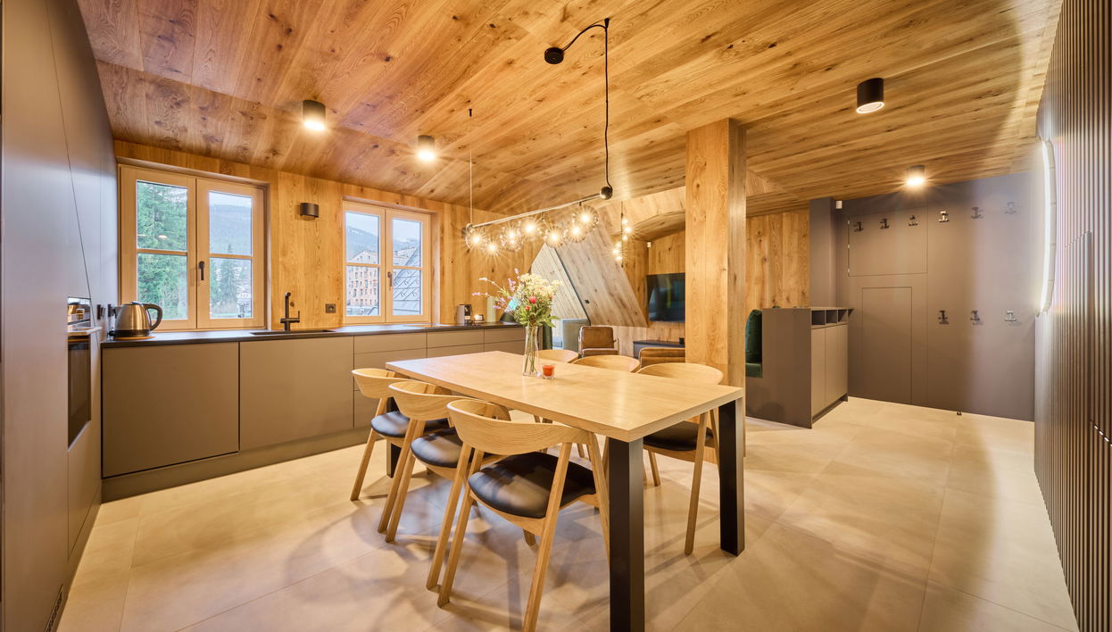 Moderne, freistehende, luxuriöse Residenz "Máj", auf 3 Stockwerken, renoviert im Jahre 2023. Im Ortszentrum von Pec pod Sněžkou, 100 m vom Waldrand, 1.3 km vom Skigebiet, 10 m vom Fluss. Im Hause: Skiraum, Zentralheizung. Parkplatz beim Haus. Einkaufsgeschäft 60 m, Lebensmittelgeschäft 200 m, Restaurant 60 m, Bar, Café 100 m, Fahrradverleih 500 m, Biergarten 60 m, Bushaltestelle "Pec pod Sněžkou" 300 m, Hallenbad 500 m. Sportzentrum 500 m, Wanderwege ab Haus, Radweg 20 m, Skilift 1.3 km, Sessellift 1.3 km, Skisportanlagen 1.3 km, Skiverleih 60 m, Skibushaltestelle 200 m, Skischule 1.3 km, Kinderskischule 1.3 km, Langlaufloipe 150 m, Kinderspielplatz 400 m. Nahe gelegene Sehenswürdigkeiten: Relaxpark, bobová dráha 400 m, Sněžka (lanovka) 1.2 km, Obří důl, Modrý důl, vodopády 3 km, Malá Úpa 8 km, Janské Lázně 15 km, Vrchlabí, Trutnov 30 km. Bekannte Skigebiete sind gut erreichbar: Pec pod Sněžkou – Černá Hora 1.3 km, Velká Úpa 2.5 km, Janské Lázně 15 km. Bekannte Seen in der Umgebung sind gut erreichbar: Dolce 25 km. Wandergebiete: Krkonošský národní park. Jugendgruppen nur auf Anfrage. Der Besitzer akzeptiert keine Jugendgruppen.