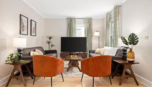 Die Unterkunft Cozy Mid Century Oasis with 2 KING beds ist ausgestattet mit 3 Schlafzimmern, einer Küche mit einem Kühlschrank und einem Geschirrspüler, einer Waschmaschine und 1 Badezimmer mit kostenlosen Pflegeprodukten und einem Haartrockner. Es gibt einen TV.