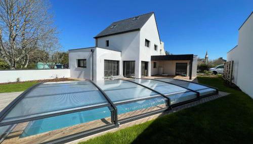 Die Unterkunft Villa avec piscine, à 5 minutes de la plage. Idéal pour vacances en famille et amis, die über einen saisonalen Außenpool verfügt, bietet Übernachtungsmöglichkeiten in Plouhinec mit kostenlosem WLAN und Gartenblick.