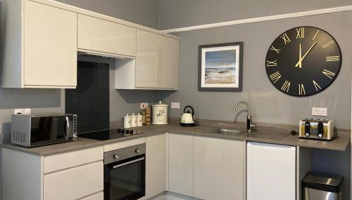 Diese Ferienwohnung mit 1 Schlafzimmer ist ausgestattet mit einem Wohnzimmer mit einem ein Flachbild-TV sowie einer voll ausgestatteten Küche.