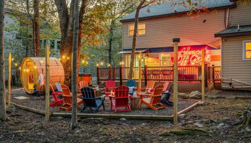 Die Unterkunft Sleeps 13 Private Sauna Hot Tub Game Room, die in Thornhurst gelegen ist – weniger als 14 km von Jack Frost Mountain und 19 km von Pocono Raceway entfernt – besticht durch Übernachtungsmöglichkeiten mit kostenlosem WLAN, einer Klimaanlage, einem Garten und einem Casino.