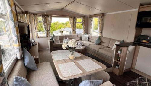 Die Unterkunft Rockley Park Poole caravan-3Bed-On site Activities besticht durch Gartenblick und Übernachtungsmöglichkeiten mit einer Veranda / Patio und einem Wasserkocher, ungefähr 4,3 km von Poole Harbour entfernt.