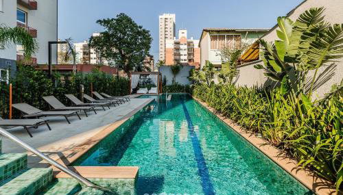 Die Gäste können in der Unterkunft Studio Completo ao Lado da PUCRS c/ Garag CON1506 den Außenpool nutzen.