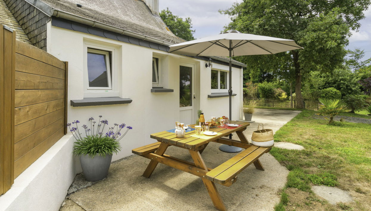 "Ty Naïg", 3-Zimmer-Haus 80 m2 auf 2 Stockwerken. Schön und gemütlich eingerichtet: Wohn-/Esszimmer mit TV (Flachbildschirm). 1 Zimmer mit 1 franz. Bett (160 cm, Länge 200 cm). Offene Küche (Backofen, Geschirrspüler, 3 Induktionskochplatten, Toaster, Wasserkocher, Mikrowelle, Tiefkühler, elektrische Kaffeemaschine) mit Esstisch. Ausgang zum Garten. Dusche, sep. WC. G-Heizung. Obergeschoss: abgeschrägt 1 Zimmer mit 2 Betten (90 cm, Länge 200 cm). Abgeschrägter, offener Salon. Terrasse 10 m2, Westlage und Nordlage. Terrassenmöbel, Gartengrill (mobil), Liegestühle (2). Zur Verfügung: Waschmaschine, Bügeleisen, Kinderhochstuhl, Babybett, Haartrockner. Internet (WLAN). Bitte beachten: Nichtraucher-Haus. Maximal 1 Haustier/Hund erlaubt. Rauchmelder. Inserat einer Privatperson nach Artikel 155, IV, CGI.