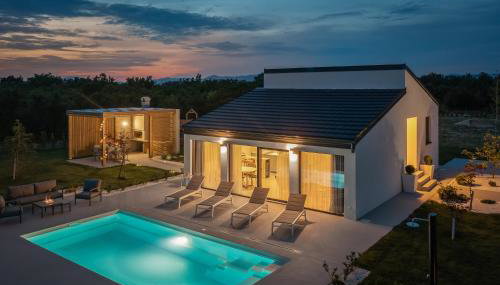 Die Unterkunft Bandelli villas mit Poolblick in Oklaj bietet Übernachtungsmöglichkeiten mit kostenlosen Fahrrädern, einem saisonalen Außenpool, einem Fitnesscenter, einem Garten und einer Terrasse. Die Unterkunft ist klimatisiert und hat einen eigenen Pool, einen Whirlpool und eine Sauna.