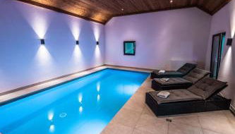 Der Wellnessbereich der Unterkunft Eifellodge - am roten Sandberg besteht aus einem Innenpool und einer Sauna.