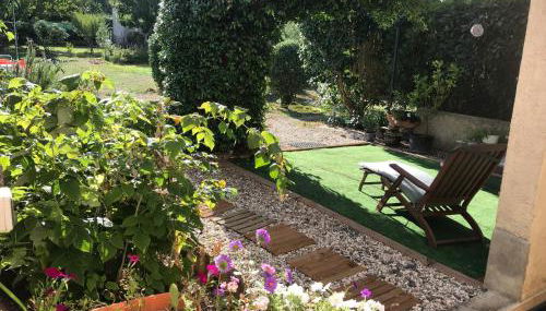 Die Unterkunft chambre et salle de bain privé s'ouvrant sur terrasse, jardin et cuisine d'été verfügt über Bergblick und Übernachtungsmöglichkeiten mit einem Garten und einer Veranda / Patio, ungefähr 32 km von Peak of Bugarach entfernt.