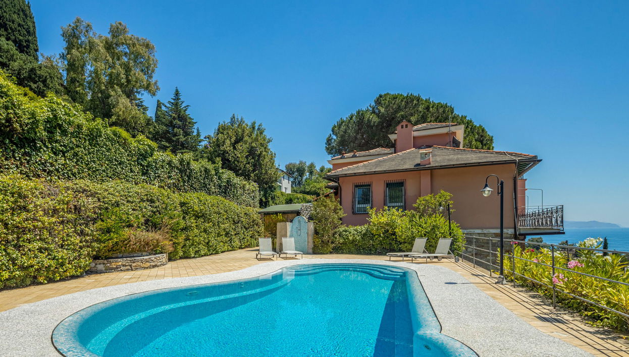 Grosses Zweifamilienhaus, einseitig angebaut. Oberhalb von San Michele di Pagana, 2 km vom Zentrum von Santa Margherita, 2.5 km vom Zentrum von Rapallo, erhöhte Lage im Villenviertel, 700 m vom Meer, in einer Sackgasse. Zur Mitbenutzung: Grundstück (eingezäunt) mit Bäumen, Schwimmbad (30 m2, 50 - 250 cm tief, saisonale Verfügbarkeit: 15.Mai. - 01.Okt.). Aussendusche, Sitzplatz (20 m2), Gartenmöbel. Zufahrt bis zum Haus. Supermarkt 1.5 km, Restaurant, Bar, Bushaltestelle 700 m, Bahnstation "Santa Margherita" 2.1 km, Steinstrand 800 m (klein). Jacht-Hafen 2 km, Golfplatz (18 Loch) 4 km. Nahe gelegene Sehenswürdigkeiten: Portofino 7 km, Camogli 11 km. Bitte beachten: Fahrzeug empfohlen. Eisenbahnlinie 400 m vom Haus. Die Nachbarschaft ist sehr lärmempfindlich. Ruhe und gutes Benehmen wird erwartet.