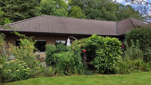 Die Unterkunft Großes Haus mit Garten, schnelles W-Lan, ruhige Lage, die über eine Terrasse verfügt, bietet Übernachtungsmöglichkeiten in Rastede mit kostenlosem WLAN und Gartenblick.