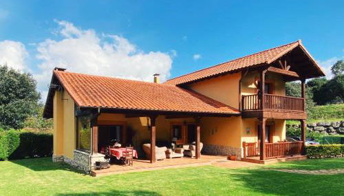 Die Unterkunft Chalet El Ñeru besticht durch Gartenblick und Übernachtungsmöglichkeiten mit einem Balkon und einer Kaffeemaschine, ungefähr 3 km von Blasloch Bufones de Pria entfernt.