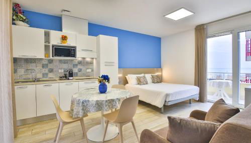 Die Unterkunft ist ausgestattet mit einer Klimaanlage, einer voll ausgestatteten Küche mit einem Essbereich, einem Flachbild-TV und einem eigenen Badezimmer mit einem Bidet und einem Haartrockner. Einige Wohneinheiten verfügen über eine Terrasse und/oder einen Balkon mit Meerblick.