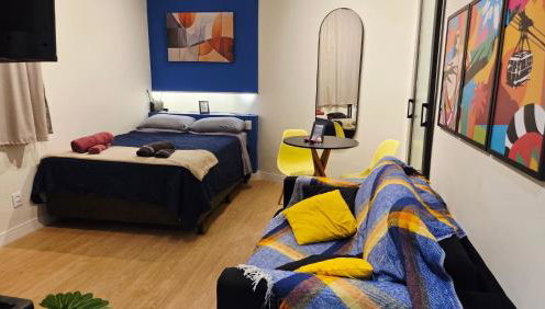 Die Unterkunft Studio Novo na Lapa, Centro do Rio de Janeiro ao lado do metrô, Arcos da Lapa, escadaria selarón, die in Rio de Janeiro gelegen ist, 2,3 km von Strand Praia do Flamengo und 600 m von Escadaria Selarón entfernt, besticht durch kostenloses WLAN und eine Klimaanlage.