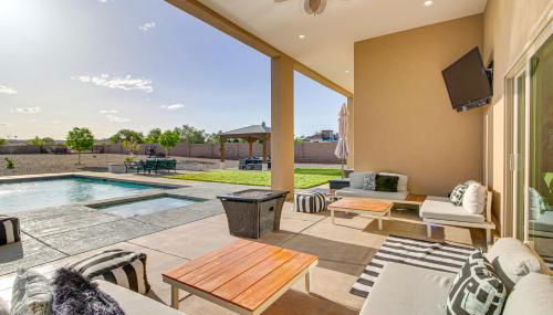Poolside and Hot Tub Lounging Luxe Rio Rancho Home