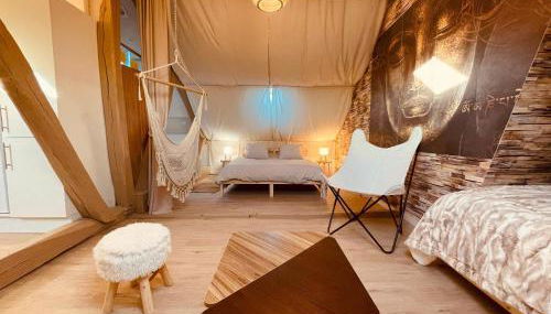 Die Unterkunft Le Tipi Rouennais ist versehen mit 1 Schlafzimmer, einer Küche mit einem Kühlschrank und einer Mikrowelle, einer Waschmaschine und 1 Badezimmer mit kostenlosen Pflegeprodukten und einem Haartrockner. In dieser Ferienwohnung werden Handtücher und Bettwäsche angeboten.