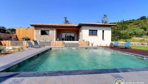 Die Unterkunft Villa la crozette 4 étoiles, climatisée avec grande piscine, die über einen Garten, eine Terrasse und eine Bar verfügt, bietet Übernachtungsmöglichkeiten in Ruoms mit kostenlosem WLAN und Poolblick.