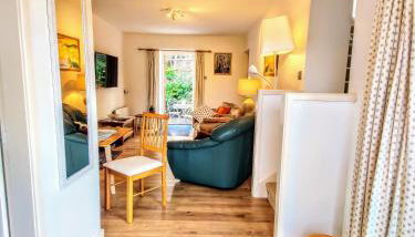 Dieses Ferienhaus mit einer Terrasse und Gartenblick bietet 1 Schlafzimmer, ein Wohnzimmer, einen Flachbild-TV, eine gut ausgestattete Küche mit einem Kühlschrank und einem Geschirrspüler sowie 1 Badezimmer mit einer Dusche. In diesem Ferienhaus werden Handtücher und Bettwäsche zur Verfügung gestellt.