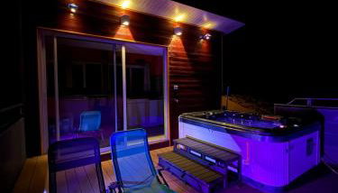 Die Unterkunft Maison de village avec spa privé & grande terrasse calme & détente bietet einen Whirlpool.