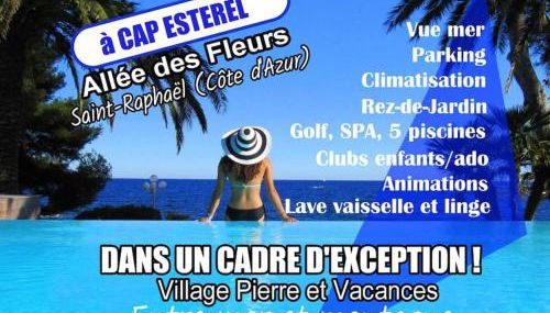 Dans un cadre d'exception, Vue mer panoramique à Agay Côte d'Azur, Village Vacances Cap Esterel, 2 chambres, avec jardin, golf, climatisation, Wifi, 5 piscines