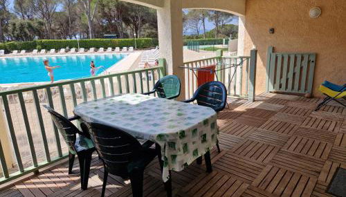 Die Unterkunft Grand T3 - Terrasse les pieds dans l'eau - Climatisation, die über einen saisonalen Außenpool, einen Garten und eine Terrasse verfügt, bietet Übernachtungsmöglichkeiten in Saint-Raphaël mit kostenlosem WLAN und Poolblick.