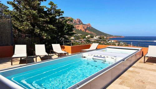 Die Unterkunft Premium Apartment Lucioles mit wunderschönem Meerblick by Riviera Homelife Management besticht durch Bergblick und Übernachtungsmöglichkeiten mit einem Balkon und einer Kaffeemaschine, ungefähr 14 km von Bahnhof St-Raphaël-Valescure entfernt.